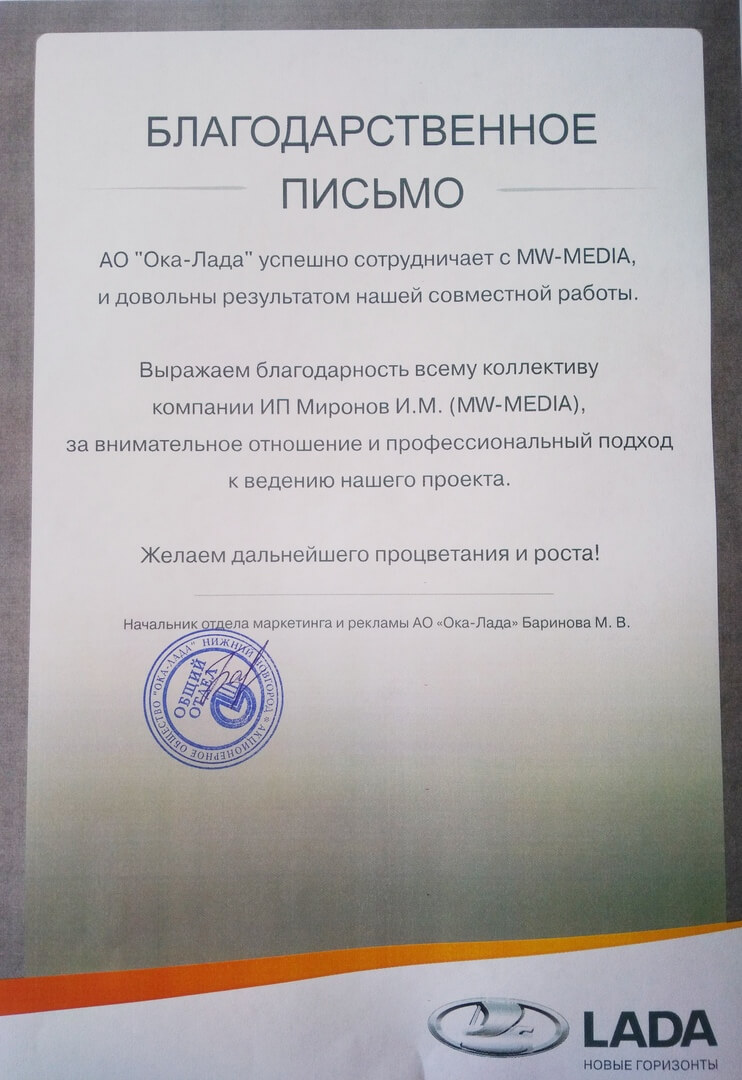 АО "Ока-Лада" успешно сотрудничает с MW-MEDIA, и довольны результатом нашей совместной работы